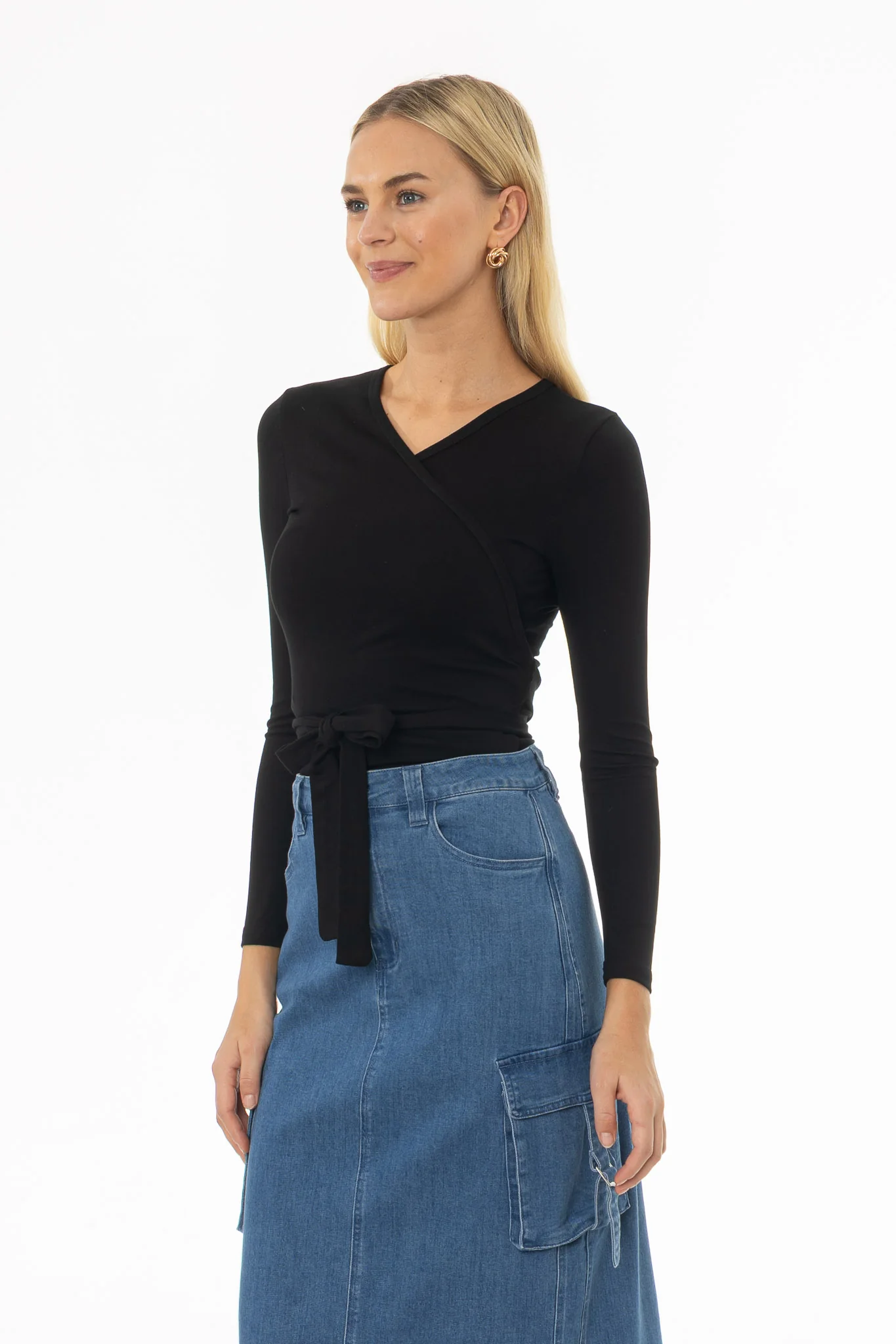 Black Solid Wrap T-Shirt