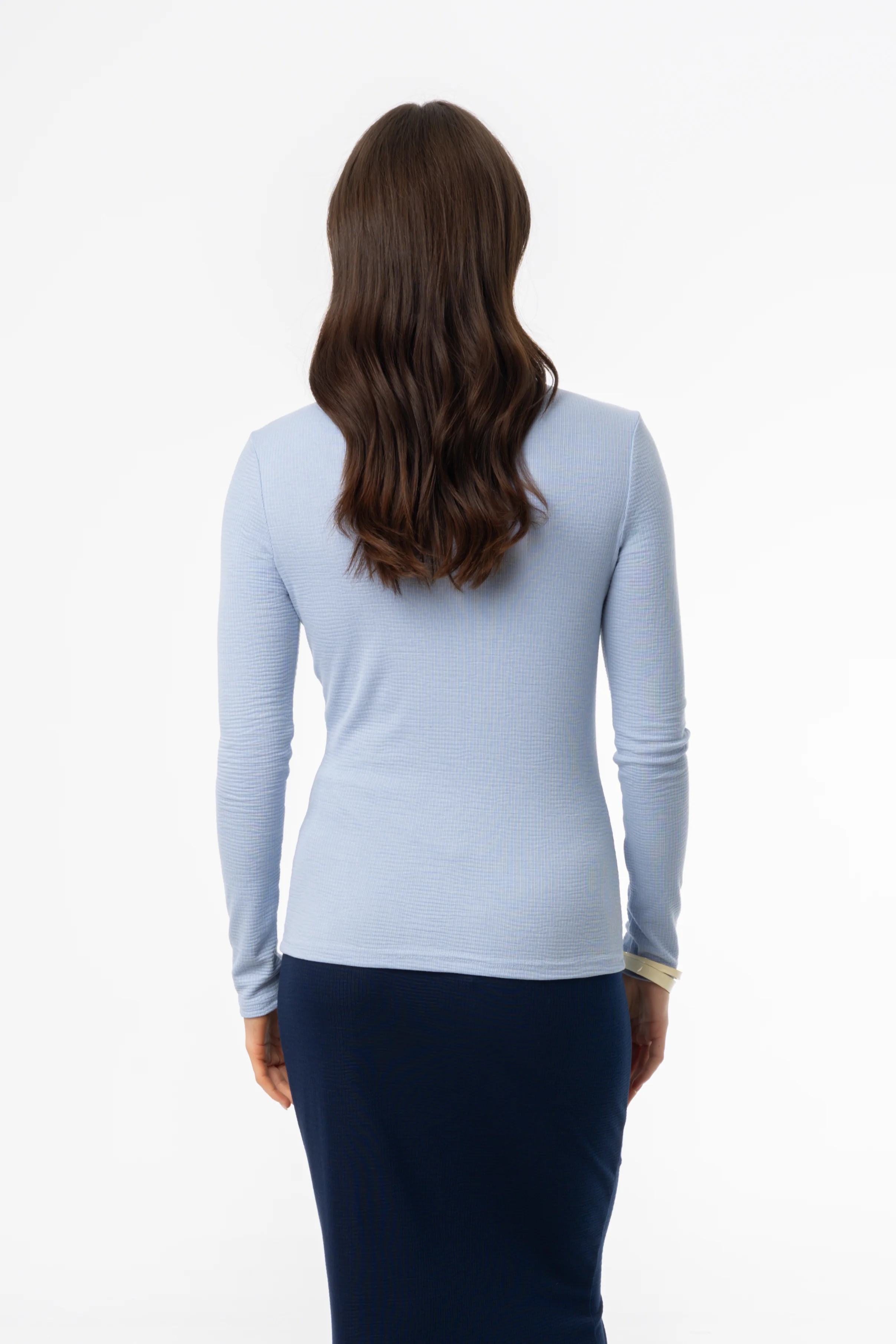 From errands to meetings, this waved round-neck long-sleeve t-shirt is your summer staple for staying stylish and comfortable. The breathable fabric keeps you cool on warmer days, while the wave texture adds just the right amount of detail to a simple design.