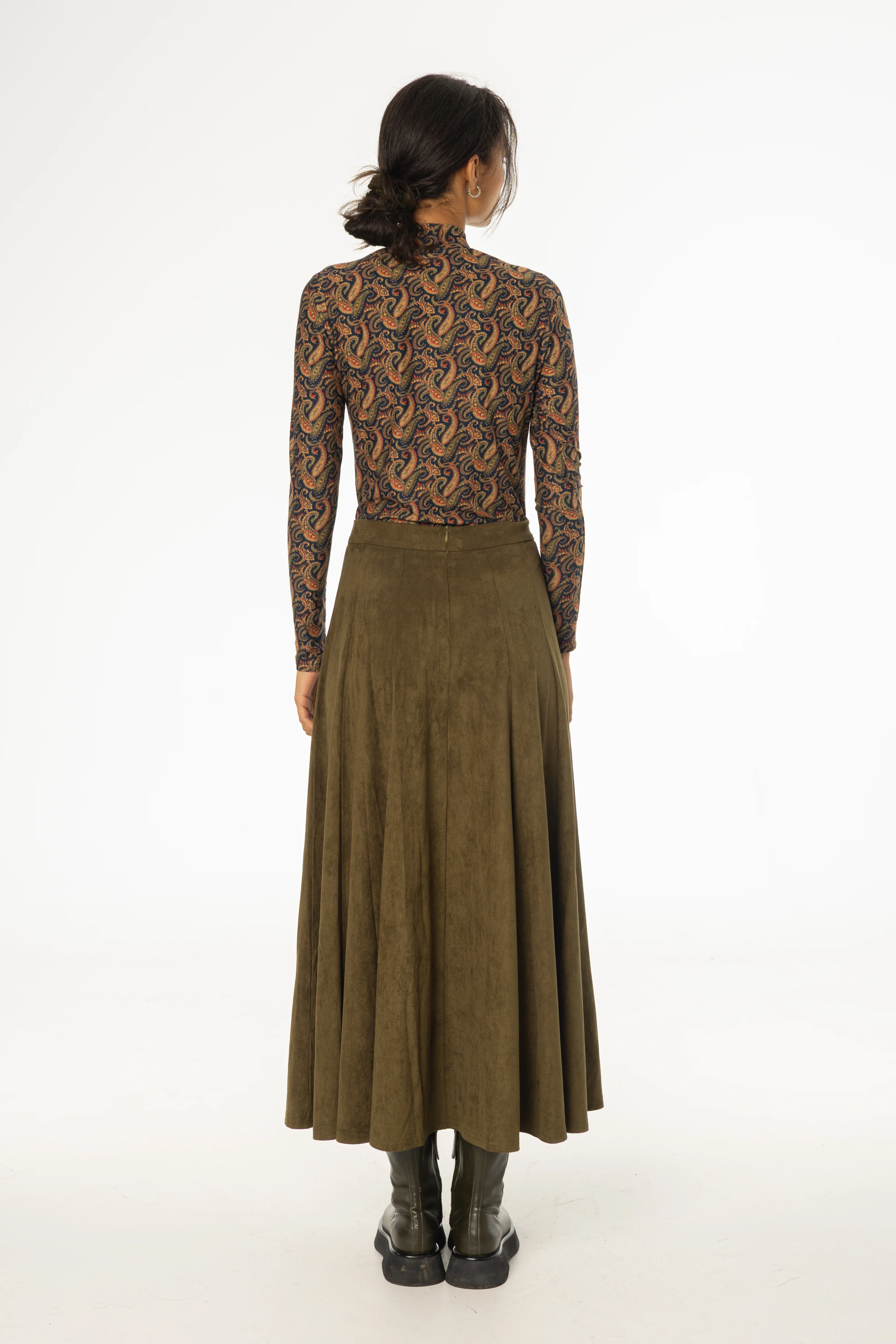 Green Paneled Microsuede Skirt